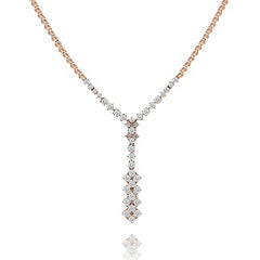 1.29 ct. Diamond 18K Rose Gold 3D Round Classic Cluster V Shape Lariat Necklace