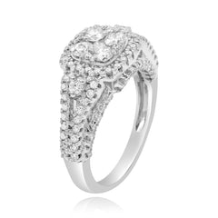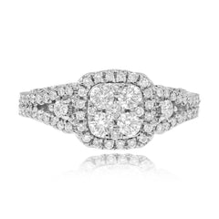 1.37 ct. Diamond Cushion Cluster Halo 18K White Gold Ring
