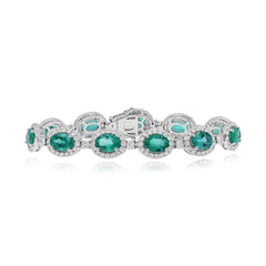 8.73 ct. Emerald & 3.01 ct. Diamond 18K White Gold Oval-Cut Halo Tennis Bracelet