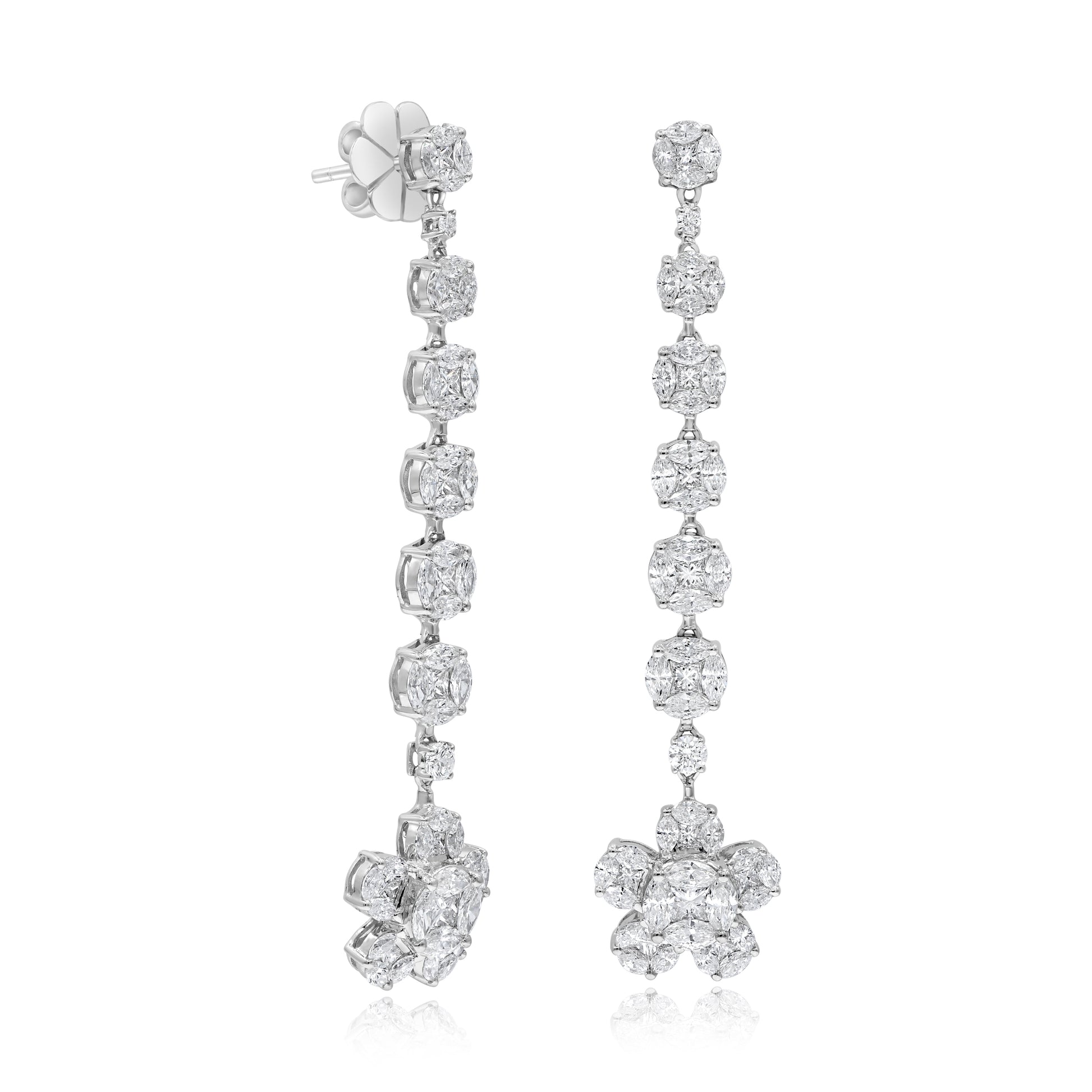5.05 ct. Diamond 18K White Gold Flower Drop Earrings