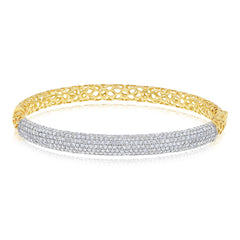 3.3 ct. Diamond 18K Two Tone Gold Micro Pave Bar Half Eternity Bagle Bracelet