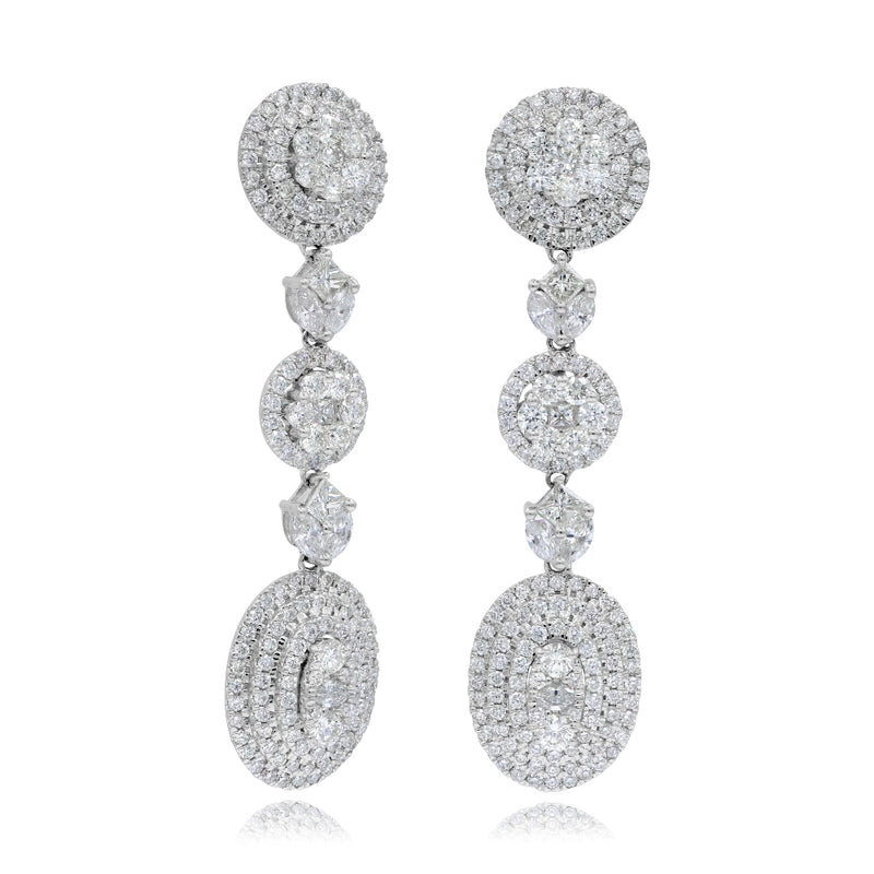 4.43 ct. Diamond 18K White Gold Cluster Drop Earrings