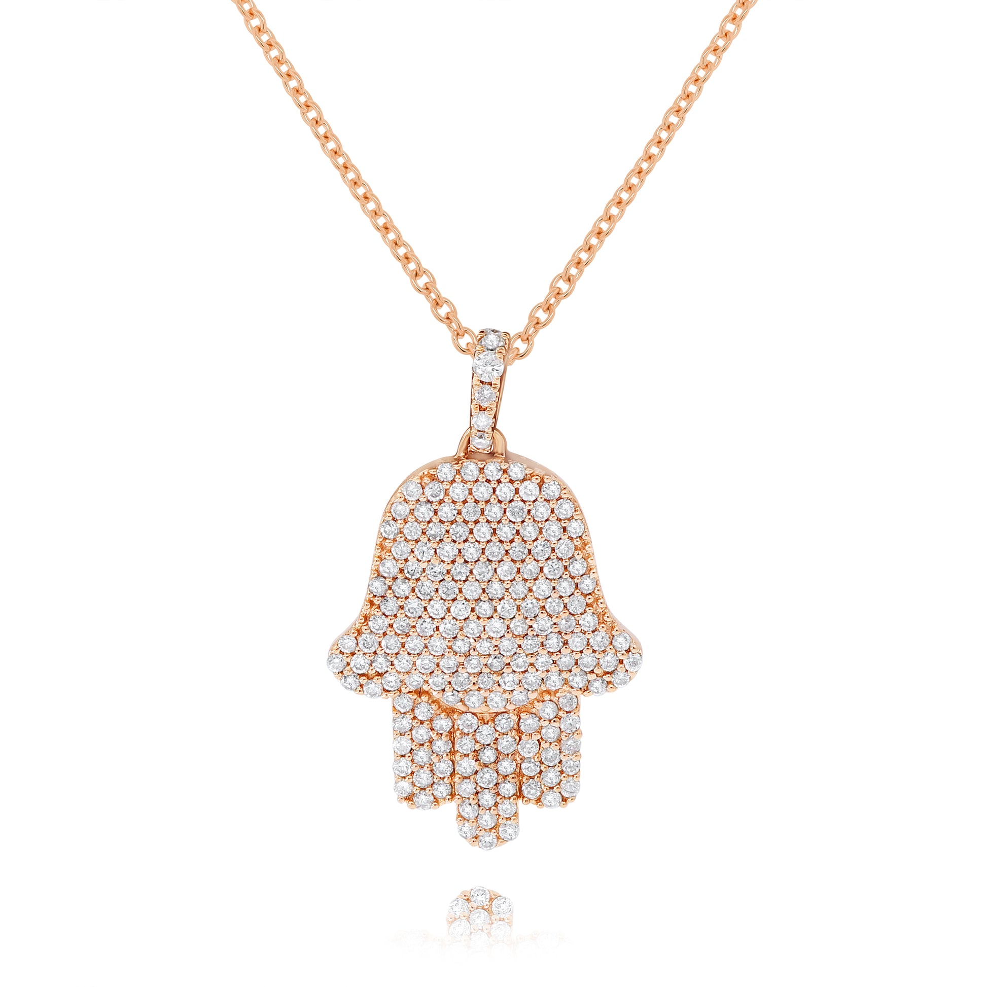 2.21 ct. Diamond 18K Rose Gold Hamsa Pendant