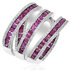 2.94 ct. Ruby and 2.46 ct. Diamond 3D Multi Row 18K White Gold Cocktail Ring