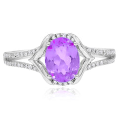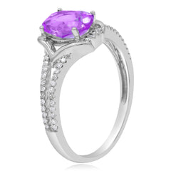 1.45 ct. Purple Amethyst & Diamond 14K White Gold Split Shank Halo Ring