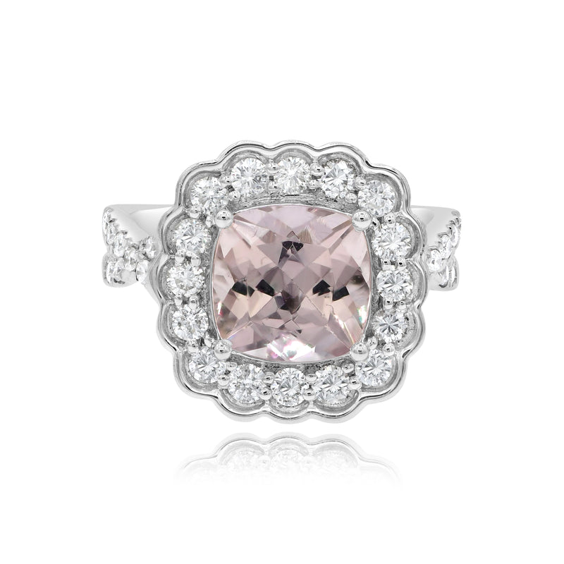 3.97 ct. Morganite & Diamond 18K White Gold Halo Flower Ring