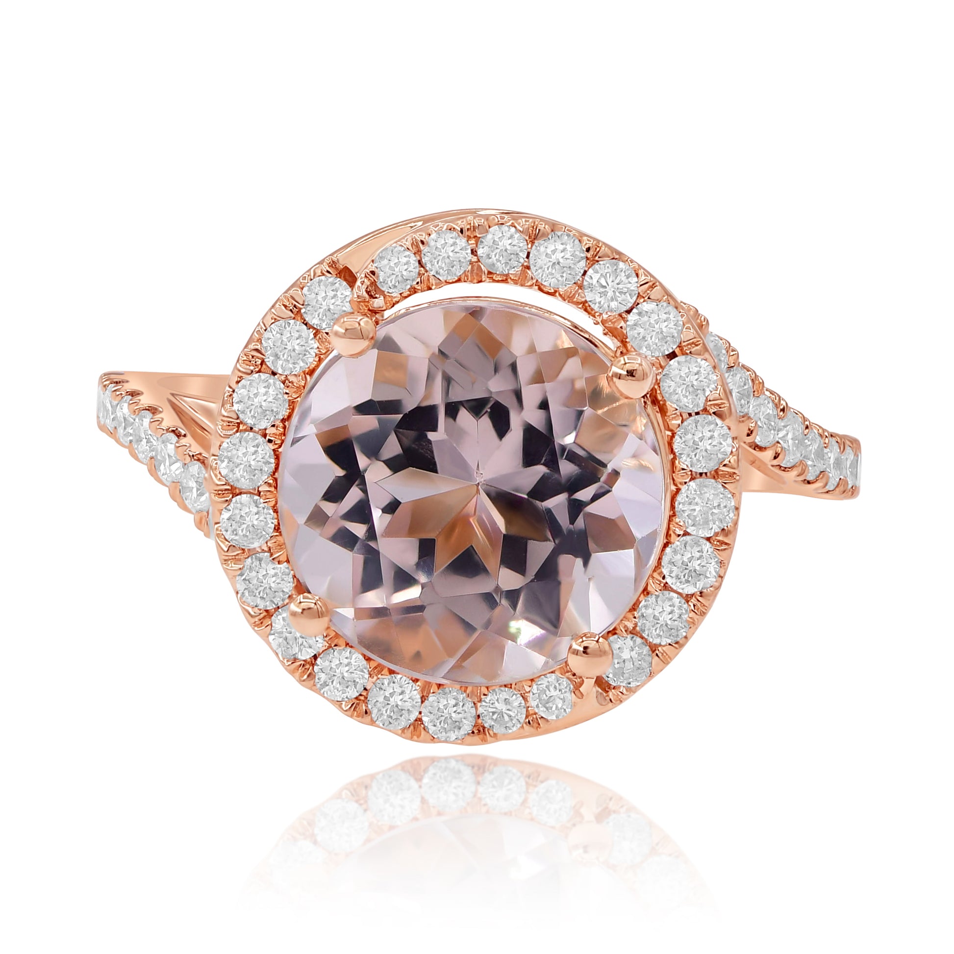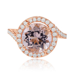 4.31 ct. Morganite & Diamond 18K Rose Gold Halo Flower Ring