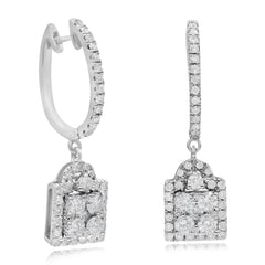 1.3 ct. Diamond 14K White Gold Square Soleil Cluster Dangle Huggies Earrings