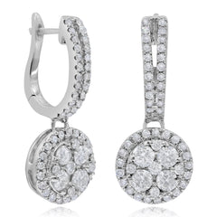 1.85 ct.Diamond 14K White Gold Hoop Dangle Earrings