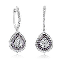 1.2 ct. Pink & White Diamond 18K White Gold Dangle Tear Drop Earrings