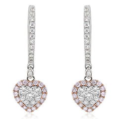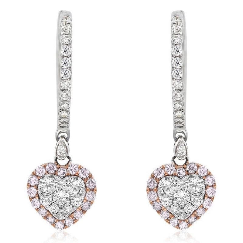 0.77 ct. Pink & White Diamond 18K Rose & White Gold Heart Shape Dangle Earrings