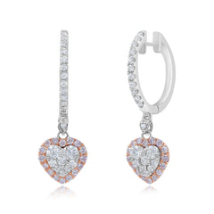 0.77 ct. Pink & White Diamond 18K Rose & White Gold Heart Shape Dangle Earrings