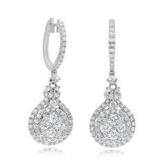 1.85 ct. Diamond 18K White Gold Flower Tear Drop Dangle Earring