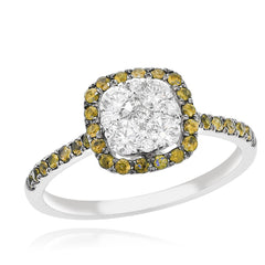 0.60 ct. Brown & White Cluster Diamond 18K White Gold Halo Engagement Ring