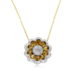 3.8 ct. Citrine & 0.12 ct. Diamond 14K Yellow Gold Sunflower Pendant