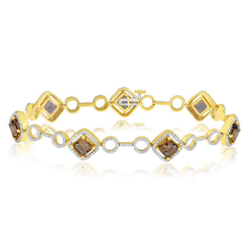 4.33 ct. Quartz & 1.35 ct. Diamond 14K Yellow Gold Link Bracelet
