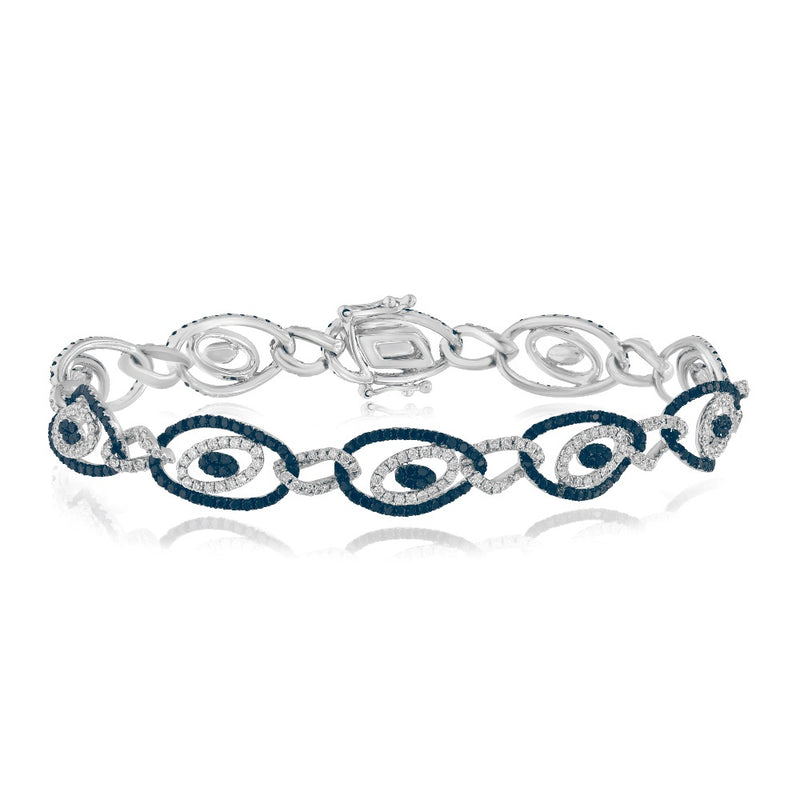 4.19 ct. Blue & White Diamond 14K White Gold Intertwining Link Bracelet