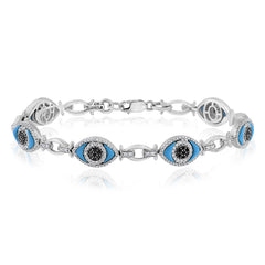 6 ct. Turquoise 1.79 ct. Black & White Diamond Evil Eye Eternity Bracelet