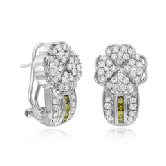 1.43 ct. Yellow & White Diamond 18K White Gold Flower Earrings