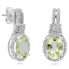 2.35 ct. Lemon Quartz & 0.3 ct. Diamond 14K White Gold Earring