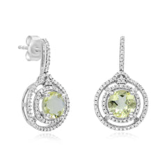 1.55 ct. Lemon Quartz & 0.37 ct. Diamond 14K White Gold Earring