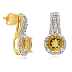1.49 ct. Yellow Citrine & 0.26 ct. Diamond 14K Yellow Gold Stud Earring