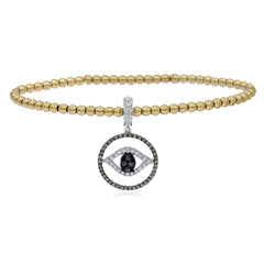 0.62 ct. Black & White Diamond Cutout Evil Eye Charm 18K Yellow & White Bracelet