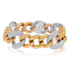 14.01 ct. Diamond 18K Two Tone Gold Chunky Cuban Link Bracelet