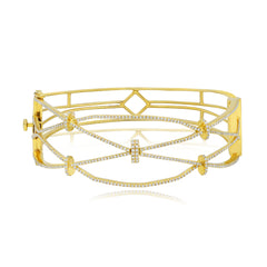1.35 ct. Diamond 18K Yellow Gold Crisscross Cable Design Hinged Bangle Bracelet
