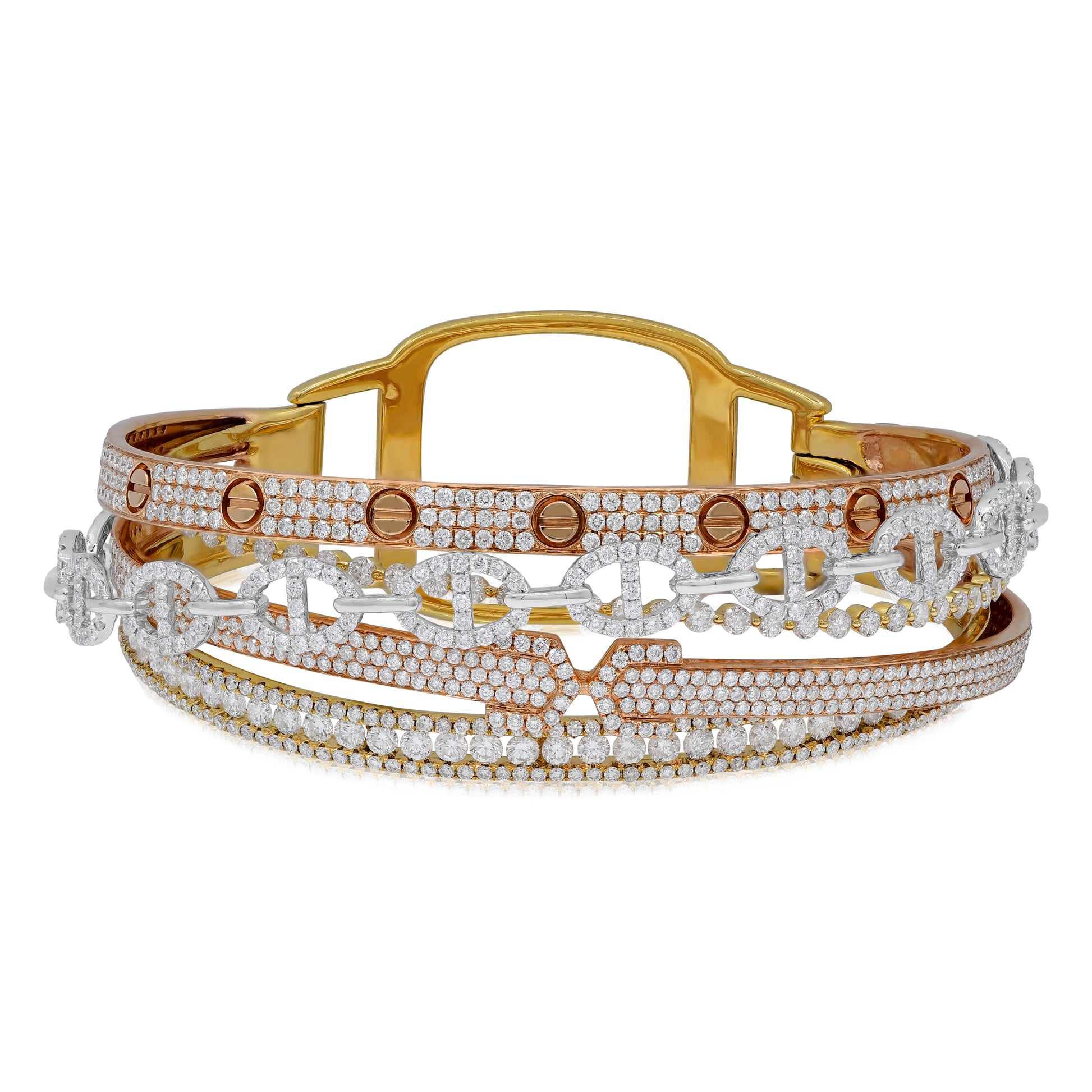 10.25 ct. Diamond Kelly Double Tour 18K Three Tone Gold Bracelet