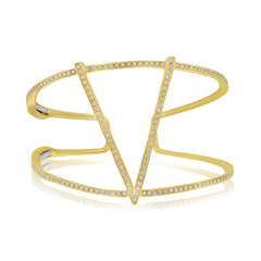 0.85 ct. Diamond Love Triangle V-Design 14K Yellow Gold Pave Cuff Bracelet