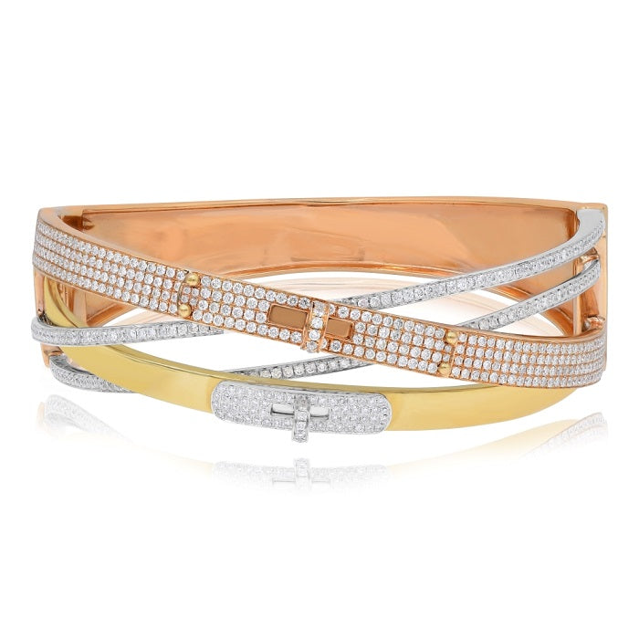 3.11 ct. Diamond 18K Three-Tone Gold Crisscross Cuff Bangle Bracelet