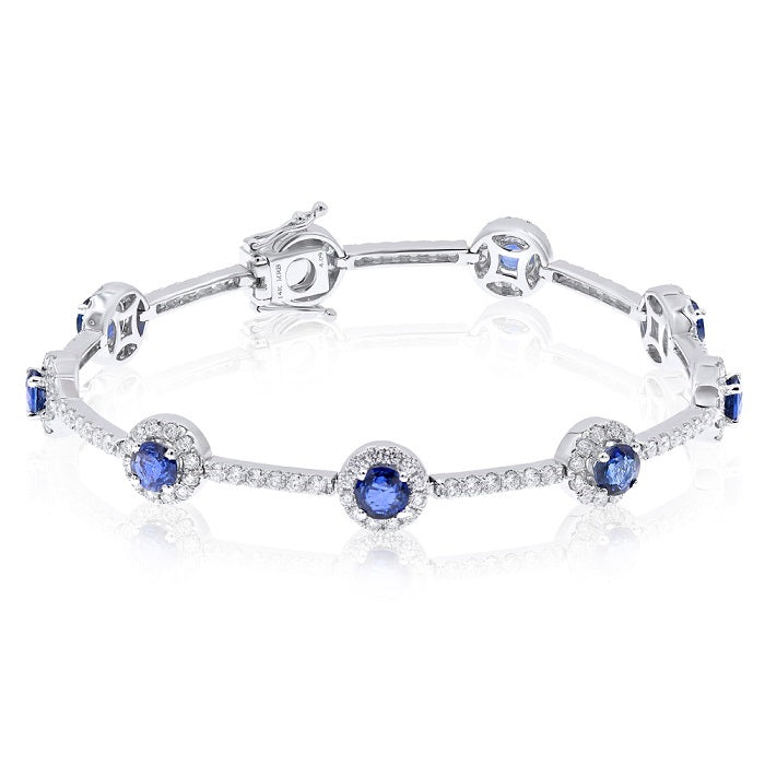 4.11 ct. Sapphire with 2.49 ct. Diamond 14K White Gold Halo Classic Tennis Bracelet