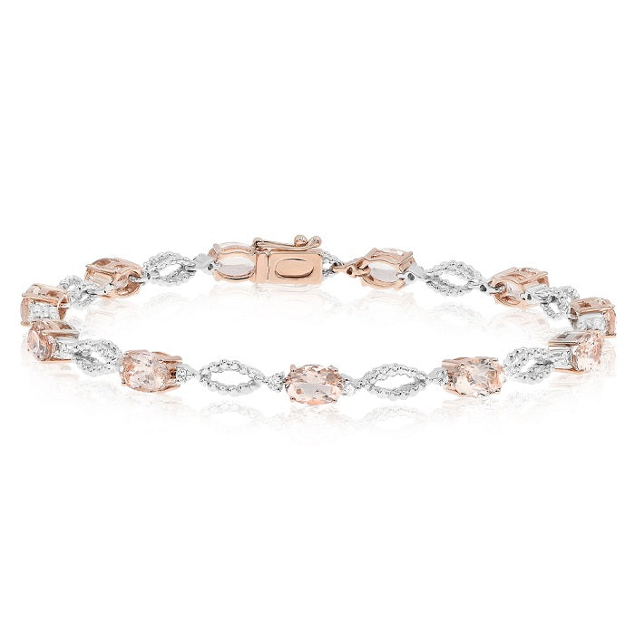 5.67 ct. Morganite & 0.41 ct. Diamond 14K Two Tone Gold Link Bracelet
