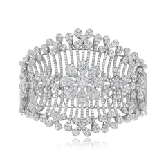 12.33 ct. Diamond 18K White Gold Flower Cuff Bracelet