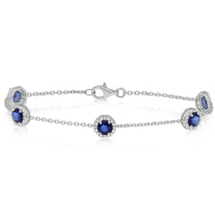 2.38 ct. Sapphire & 0.36 ct. Diamond 14K White Gold 5 Station Classic Bracelet