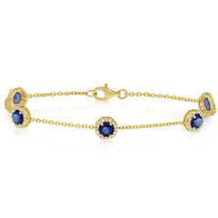 2.54 ct. Sapphire & 0.35 ct. Diamond 14K Yellow Gold 5 Station Classic Bracelet