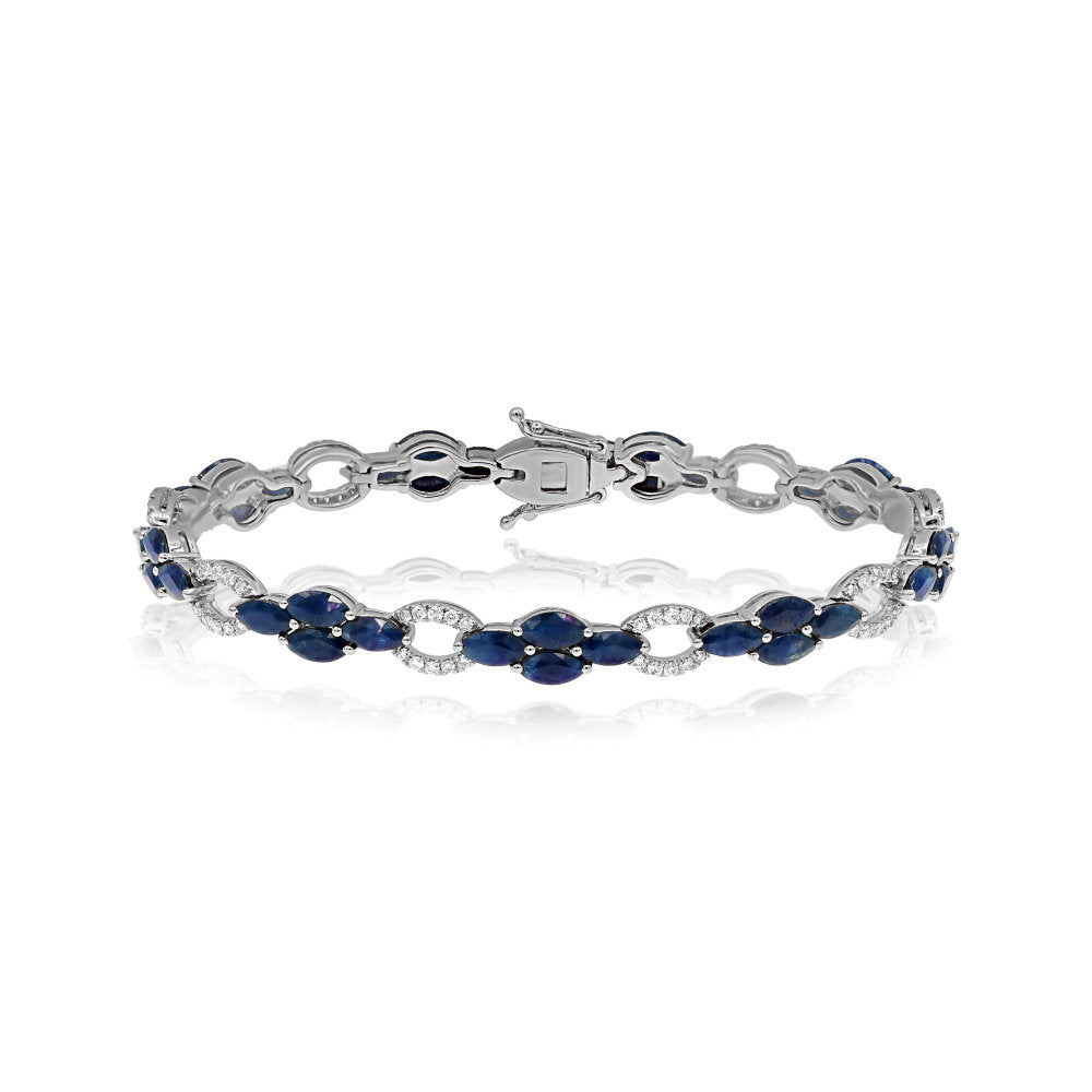 12.8 ct. Sapphire & 0.87 ct. Diamond 14K White Gold Cluster Link Bracelet