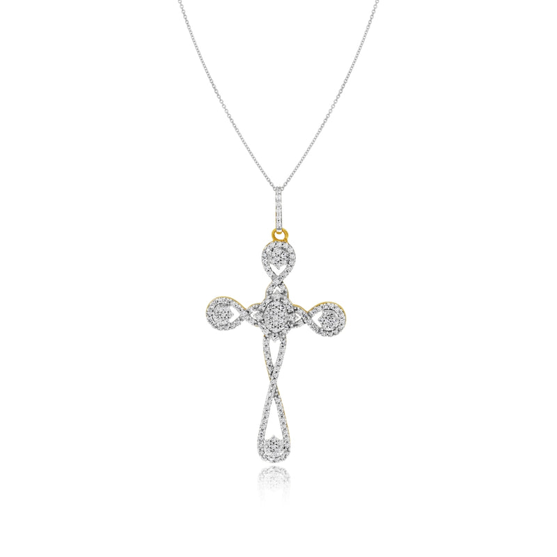 0.47 ct. Diamond 14K White Gold Scallop Filigree Cross Pendant