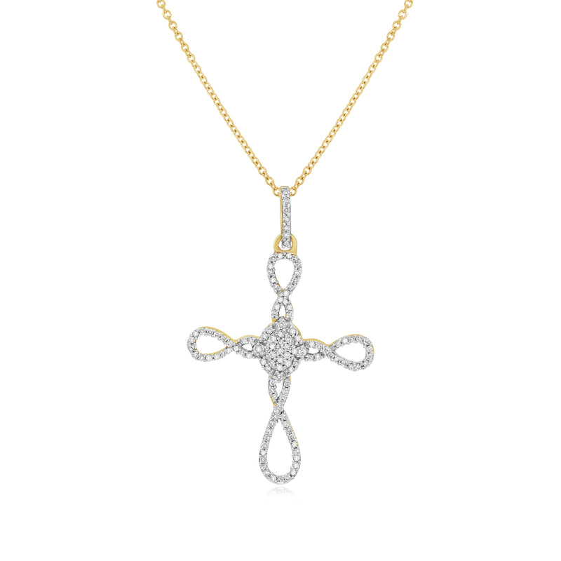 0.26 ct. Diamond 14K Yellow Swirl Infinity Cross Pendant