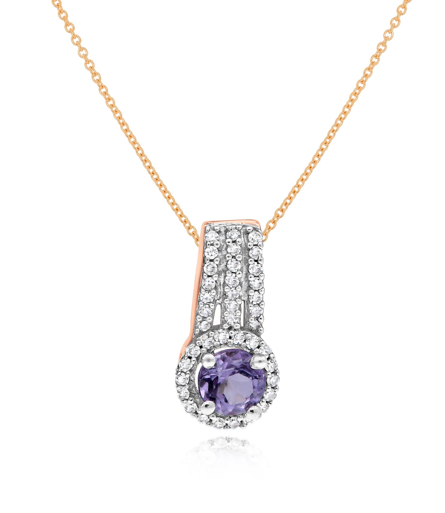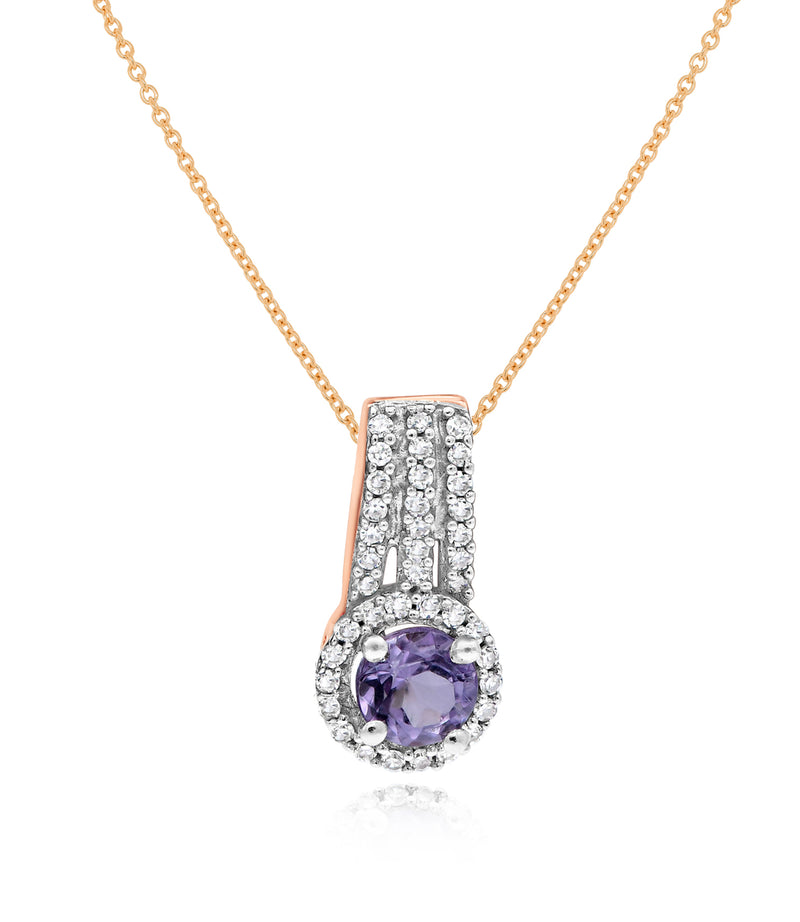 0.25 ct. Pink Amethyst & 0.1 ct. Diamond 14K White Rose Pendant
