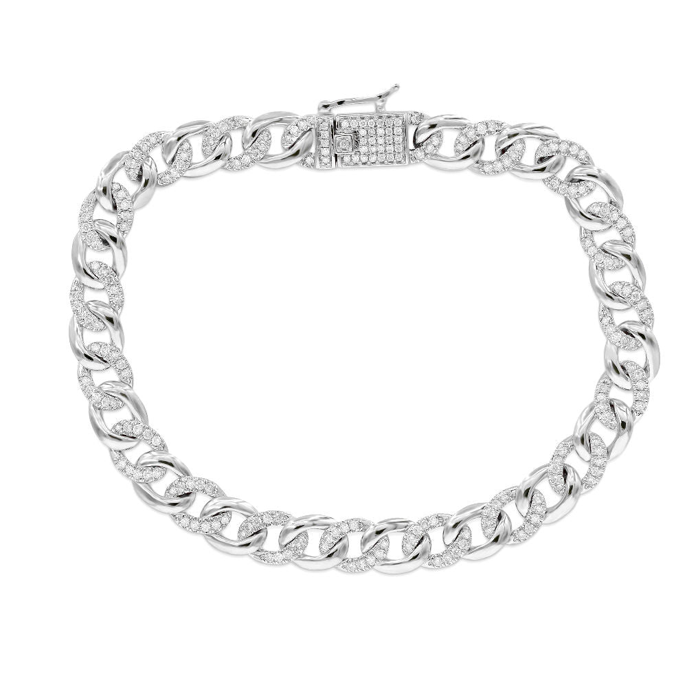 1.61 ct. Diamond 14K White Gold Cuban Link Bracelet
