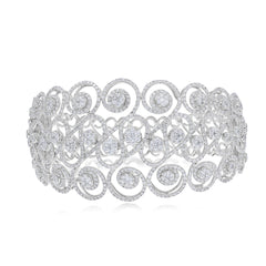 6.27 ct. Diamond 18K White Gold Flower Cluster Cuff Bangle Bracelet