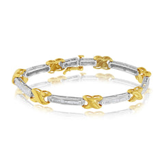 1.39 ct. Diamond 14K Two Tone Gold Tapered & X-Link Tennis Bracelet