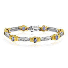 3.75 ct. Sapphire & 0.95 ct. Diamond 14K Two Tone Gold Column Link Bracelet