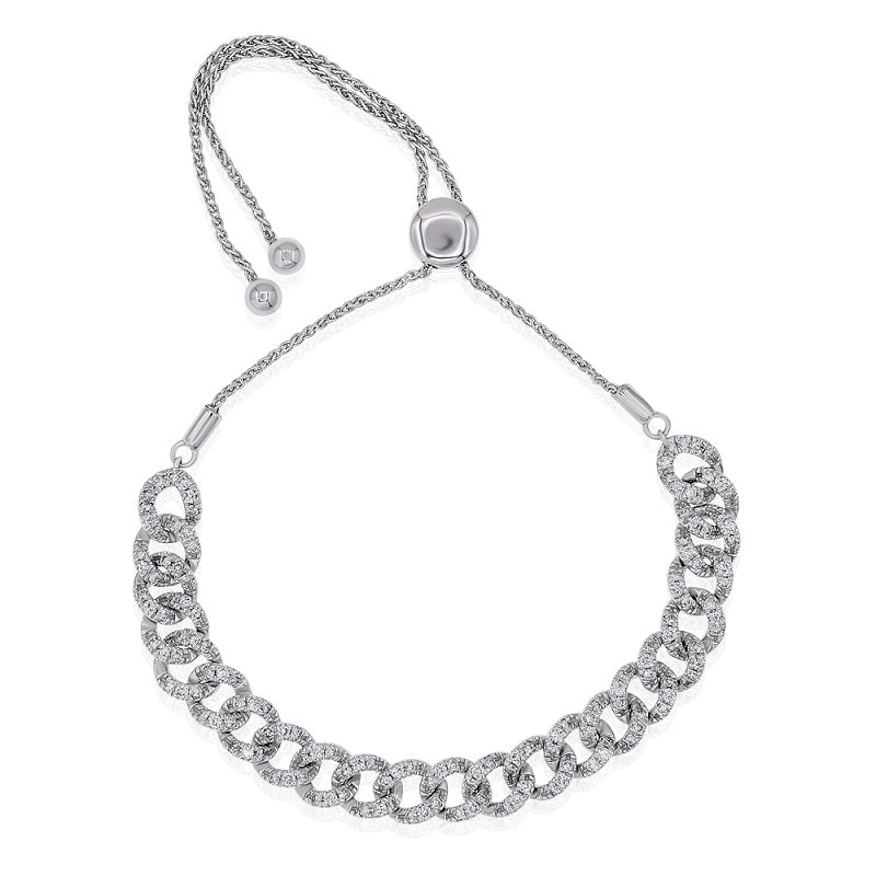 1.53 ct. Diamond 18K White Gold Cuban Chain Link Bolo Bracelet