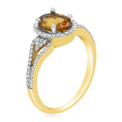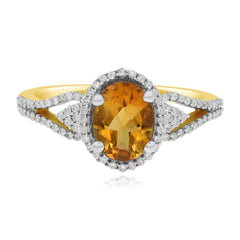1.03 ct Yellow Citrine & Diamond 14K Yellow Gold Halo Ring
