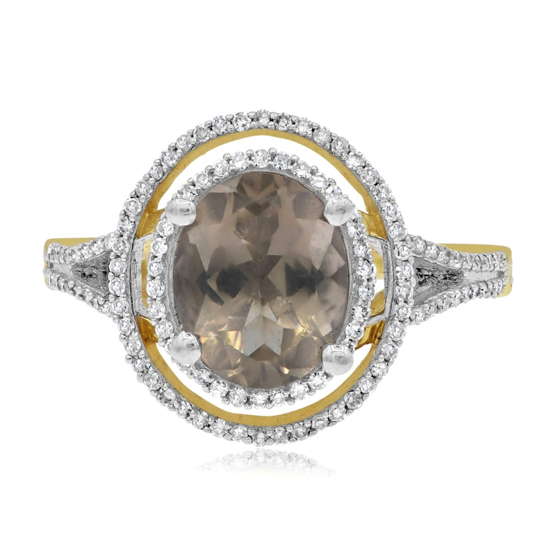 2.7 ct. Brown Quartz & Diamond 14K Yellow Gold Split Shank Halo Cocktail Ring