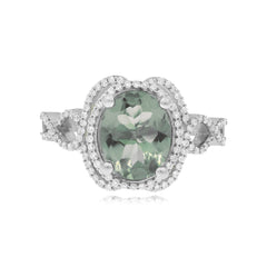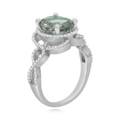2.81 ct. Green Amethyst & Diamond 14K White Gold Infinity Halo Ring
