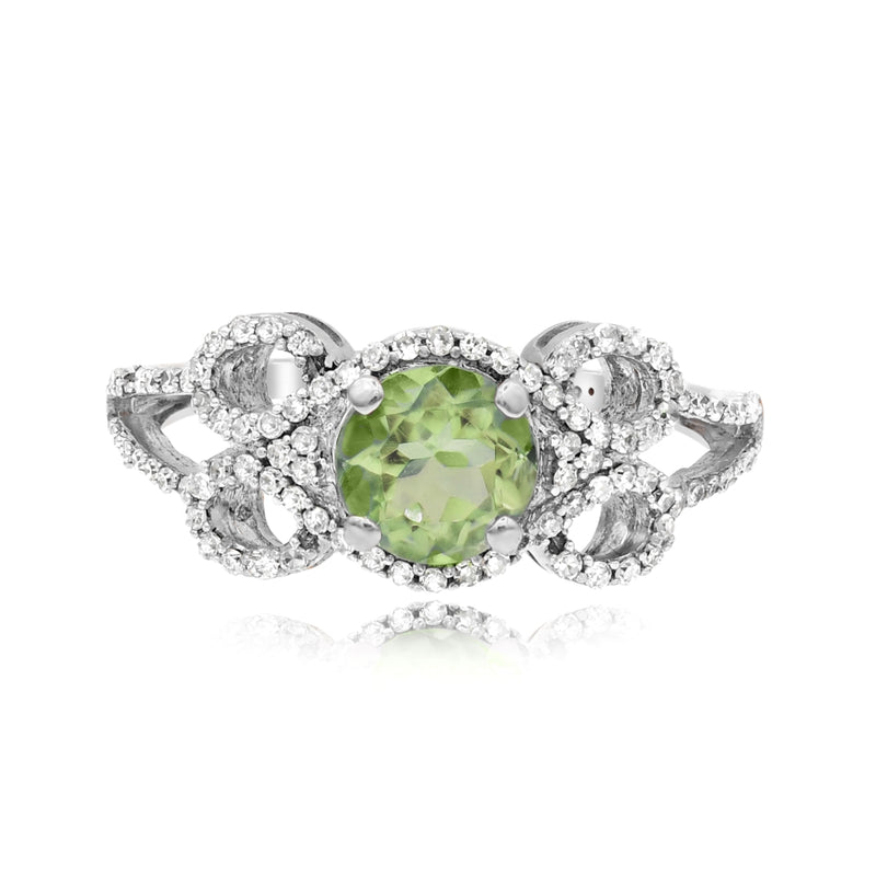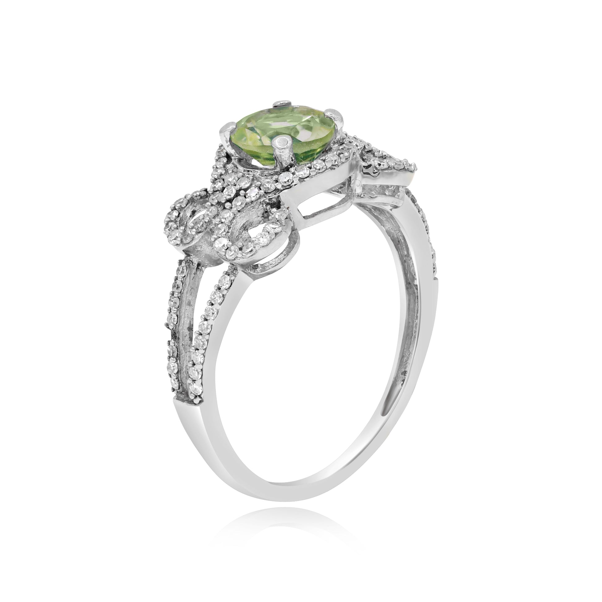 1.04 ct Lemon Quartz & Diamond 14K White Gold Floral Petal Vine Scroll Halo Ring